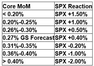 Market reaction forecast to the CPI report (per Goldman Sachs):