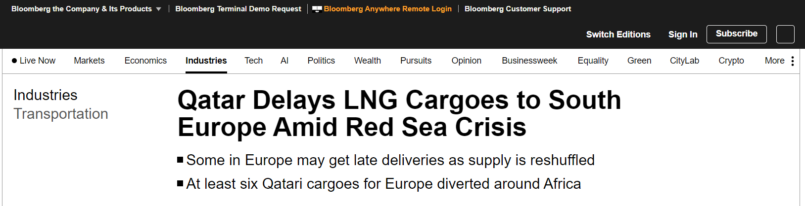 QatarEnergy announces delays in some LNG shipments to European customers due to tensions on the voyage.