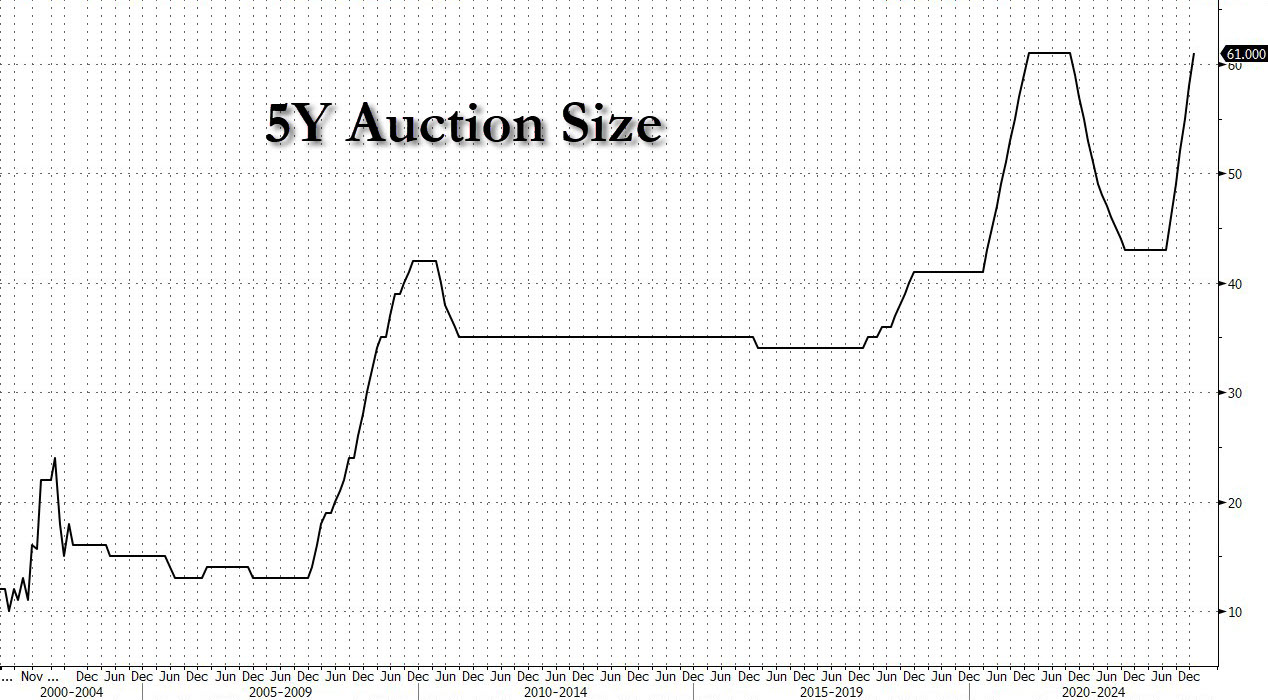 Today's massive 61 billion USD 5-year bond auction disappointed the market with yield at 4.055%, higher than expected 4.035%. This is the highest tails since 09/2022.
