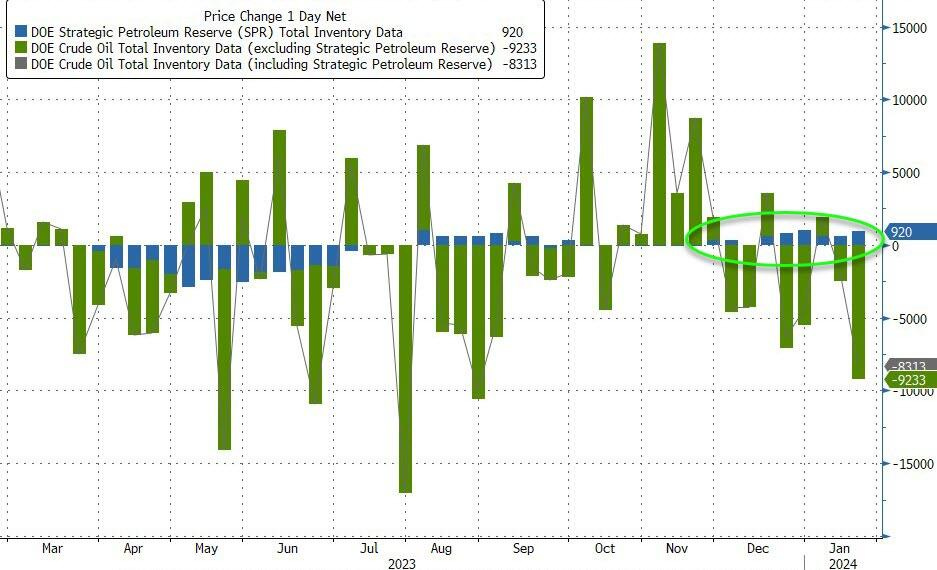 Biden administration added 920,000 barrels to SPR last week - 9th consecutive week of oil additions
