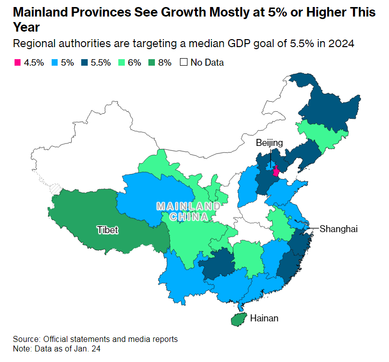 Some of China's largest provinces are targeting at least 5% GDP growth in 2024