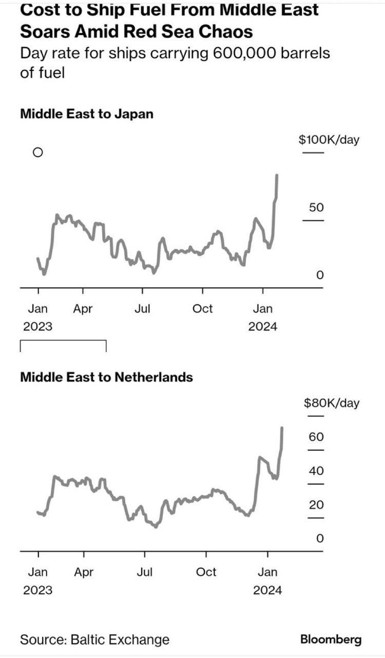 Fuel shipping costs from Middle East surge amid Red Sea chaos