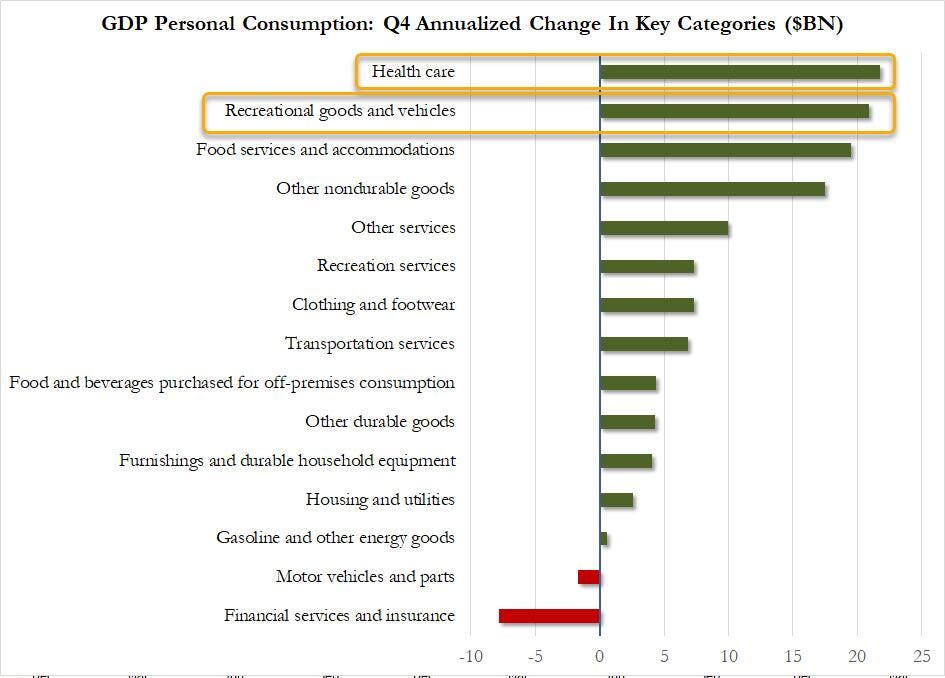 For individuals: Healthcare services and entertainment goods, vehicles contribute nearly half to personal spending growth.