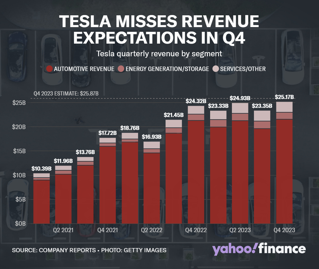 Tesla expects revenue growth to slow in 2024 due to high competition + slowing demand.