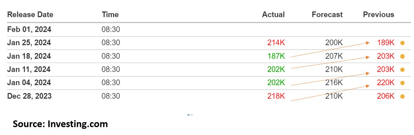 In particular, seasonally adjusted initial unemployment claims were continuously revised upward