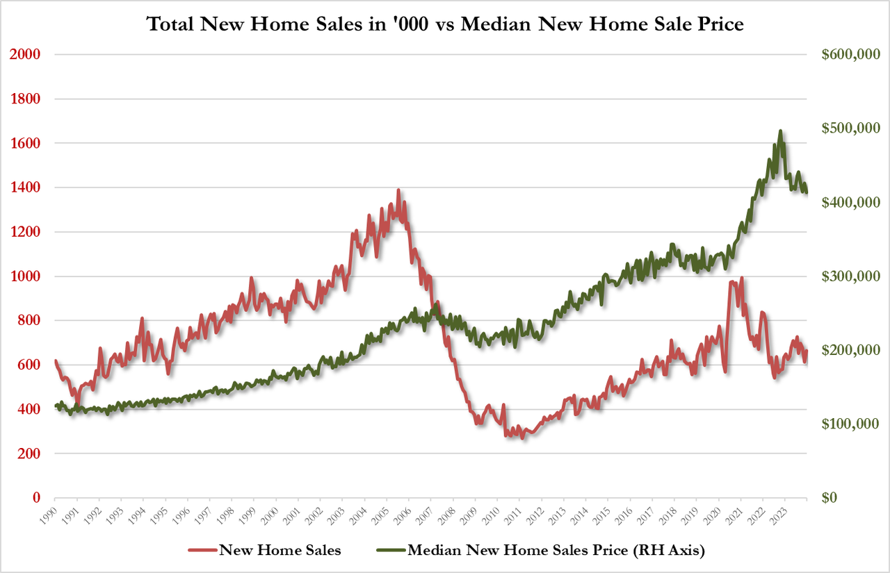 December new home sales increased +8% MoM to 664,000, beating estimates of 615,000 thanks to lower mortgage rates attracting buyers.