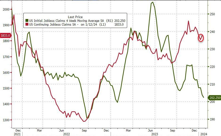 Initial claims unadjusted for seasonal factors dropped sharply to 249,000.
