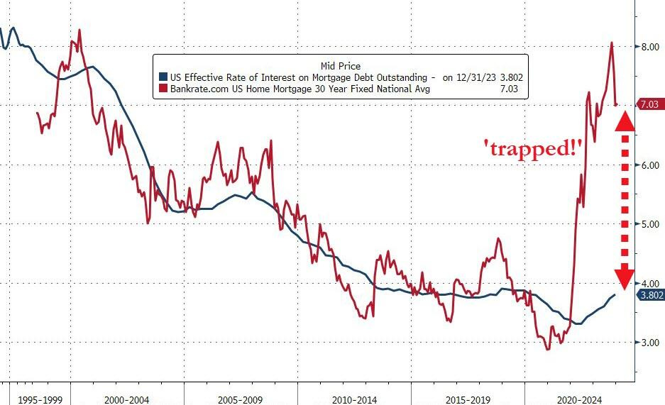 Mortgage rates have fallen significantly recently, though still much higher than real rates.