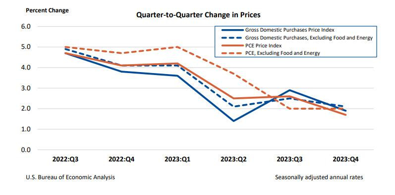 PCE inflation index Q4 increases relatively stable at 1.7% after 2.6% in Q3
