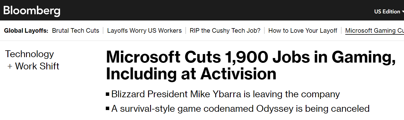 Just hitting 3 trillion USD market cap milestone, Microsoft cuts 1,900 jobs in Activision Blizzard and Xbox divisions.