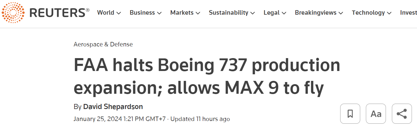 FAA requires Boeing to pause expansion of Boeing 737 MAX production after door plug safety incident, allowing Max 9 flights to resume.