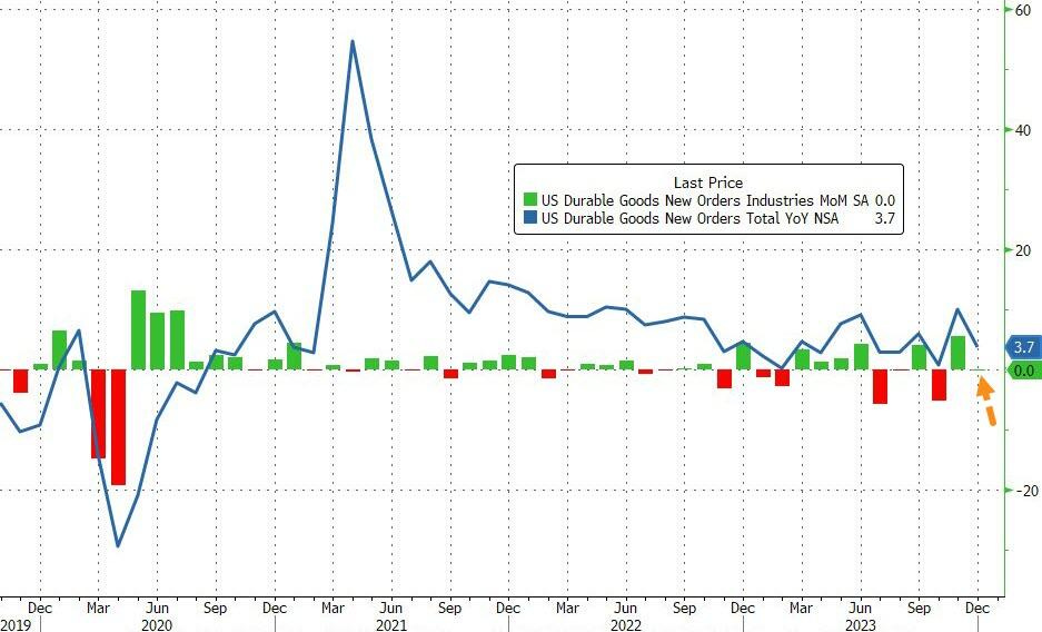 December core durable goods orders rose +0.6% MoM.