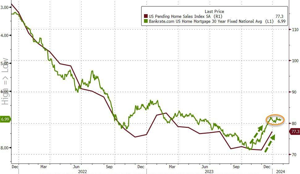 Pending home sales increase +8.3% MoM up 77.3, the highest level in 5 months.