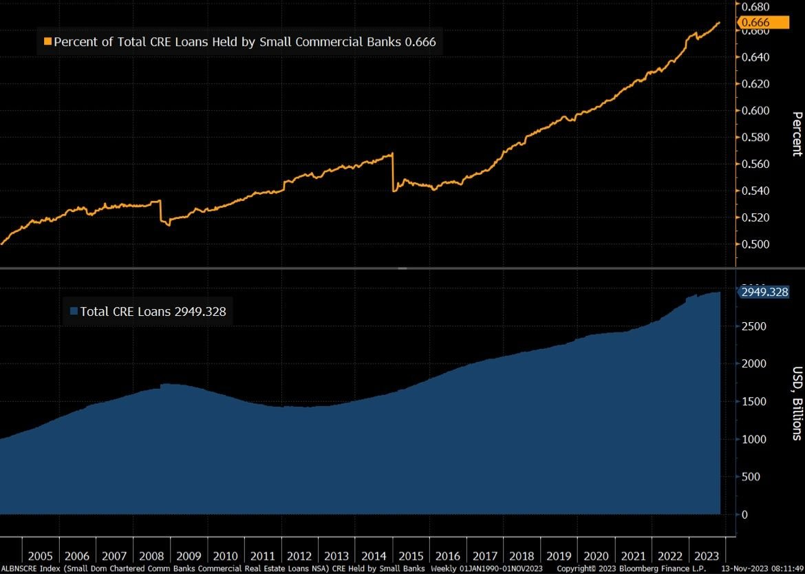 14% CRE loans (commercial real estate), of which 44% office building loans > current market value of the collateral real estate itself.