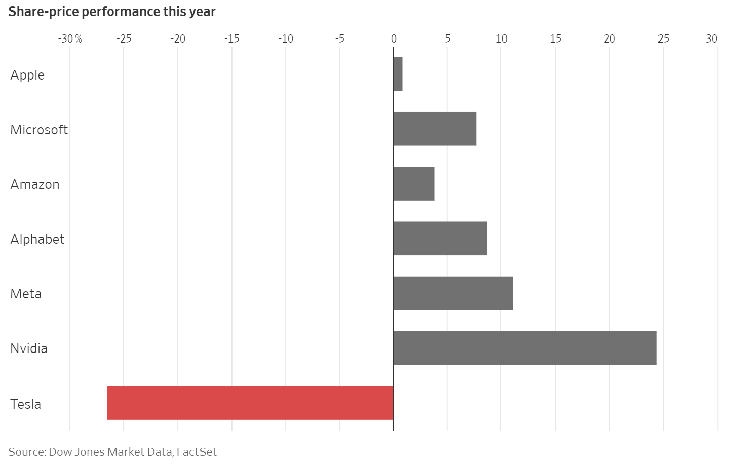 Fashion and leather goods: +9%",", reaching €42.2 billion →","Main growth sector in revenue.","Wines and spirits: -","7%",", reaching €6.6 billion.","Perfumes, cosmetics: +","7%",", reaching €8.3 billion.","Watches, jewelry: +","3%",", reaching €10.9 billion.","Image","Image","The luxury sector went through a difficult period after Covid due to tightened consumer spending, especially in the US and China.","However, the positive report results have satisfied investors.","Some other news:","14% of CRE loans (commercial real estate), of which 44% office building loans > current market value of the collateralized real estate itself.","Banks are holding more than 2,900 billion USD in CRE debt.","Office building prices down 40% from peak.","CRE prices down more than 20%.","Image","Image","Tesla recalls nearly 200,000 Model S, X and Y vehicles in the US due to rearview camera defect.","Tesla stock is no longer so “Magnificent” this year.","Elon Musk's AI startup aims to raise $6 billion at a proposed valuation of $20 billion to compete with OpenAI.","China: PBoC continues strong re-lending for businesses (especially small businesses) - promoting growth.","Image","Image", reaching €42.2 billion → Key revenue growth sector.