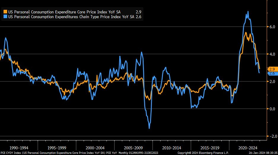 Fed's preferred inflation gauge - PCE December increases +0.2% MoM and +2.6% YoY.