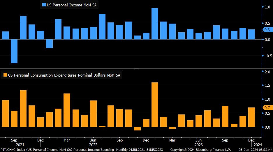 However, spending increases strongly 0.7% MoM, higher than expected 0.5%.