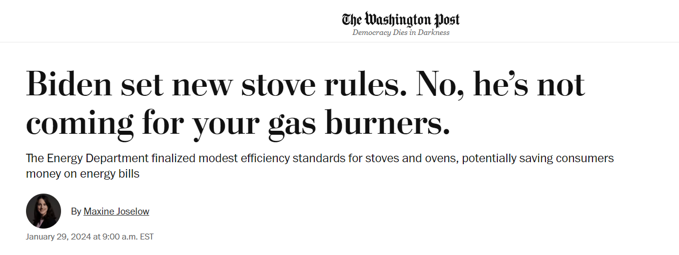 US Department of Energy issues regulations requiring energy efficiency in operations using gas and electric cooktops and ovens,