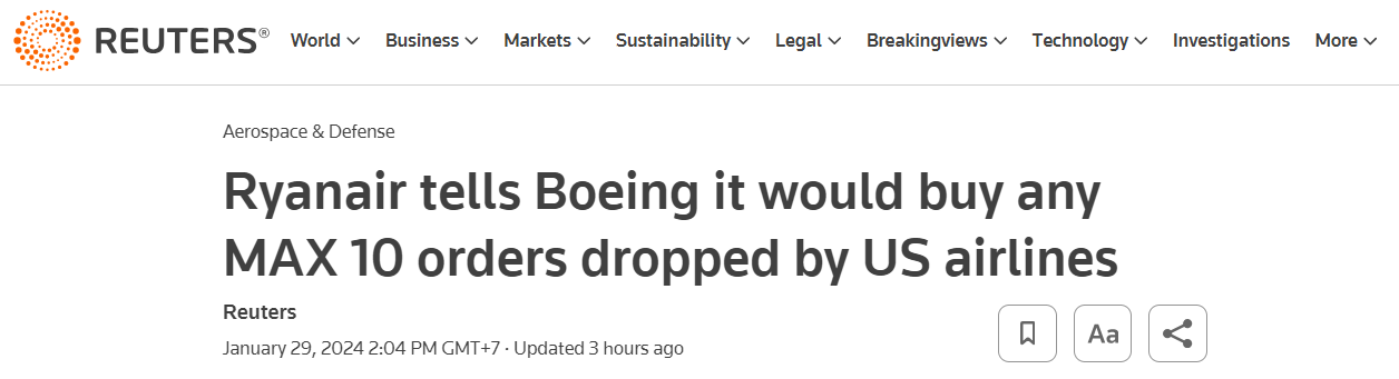 Boeing crisis update: Ryanair could take all of Boeing's MAX 10 orders if other airlines cancel…