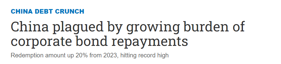 Total value of corporate bonds maturing in 2024 reaches record high ~6.8 trillion CNY (~945.53 billion USD), up +20% Y/Y.