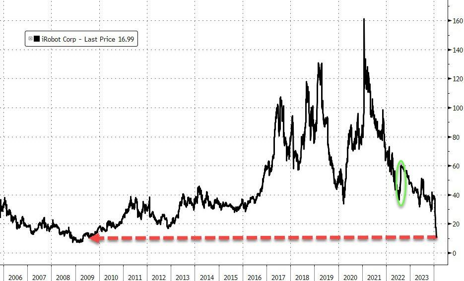 IRBT stock down more than 30% - to the lowest level since 2009 after the news