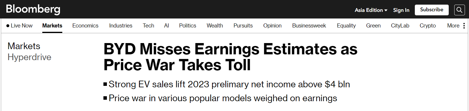 BYD Co.'s full-year 2023 profit rises thanks to surging EV sales—but misses analyst expectations due to price war in China