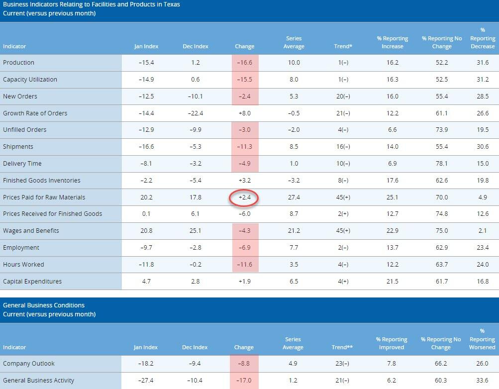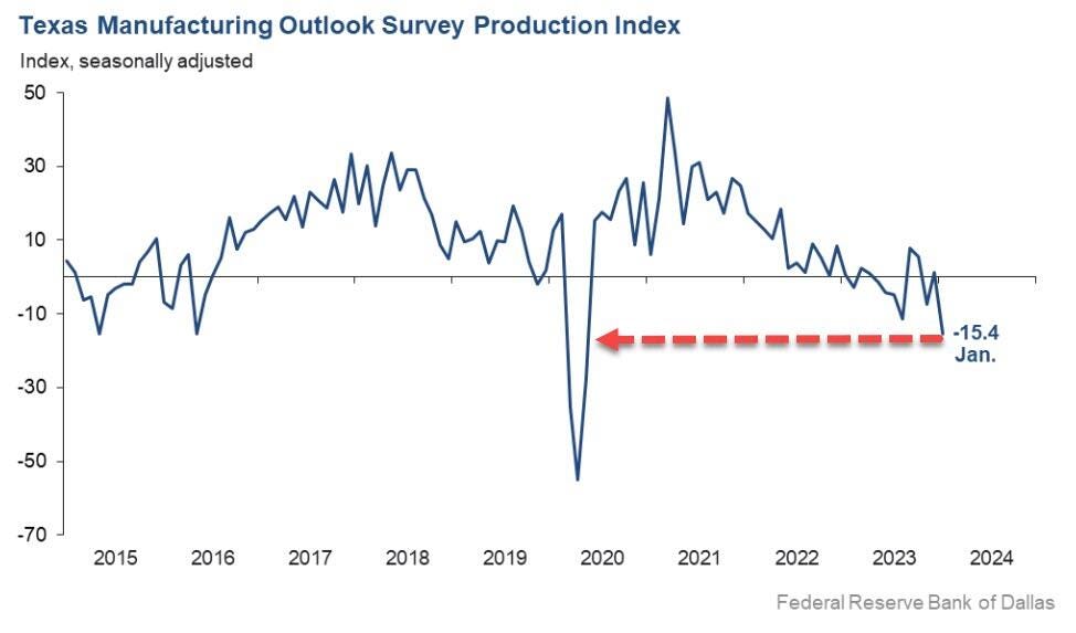 Texas manufacturing activity collapses in January