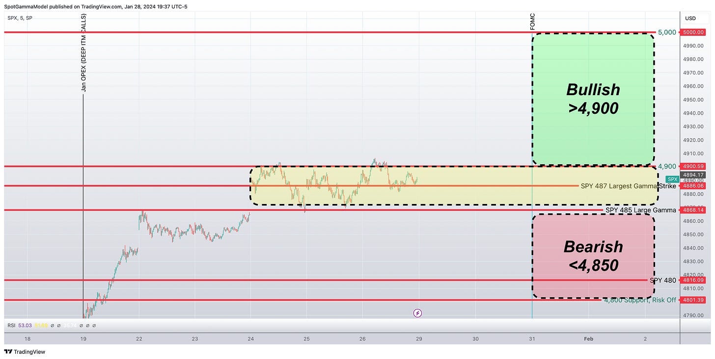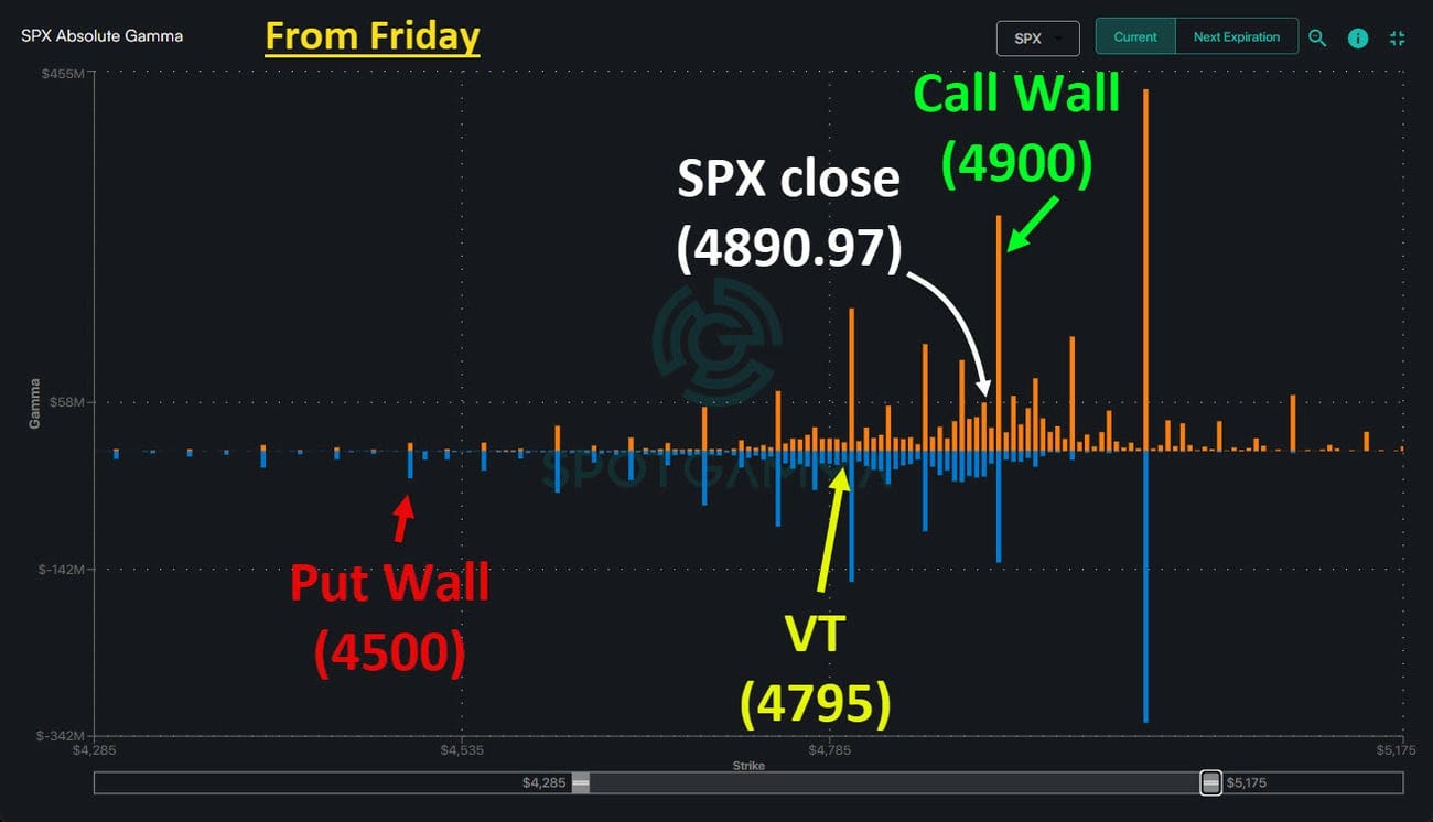 4900 becomes immediate call wall and initial resistance after last week with 5000 considered the market top at the upper end