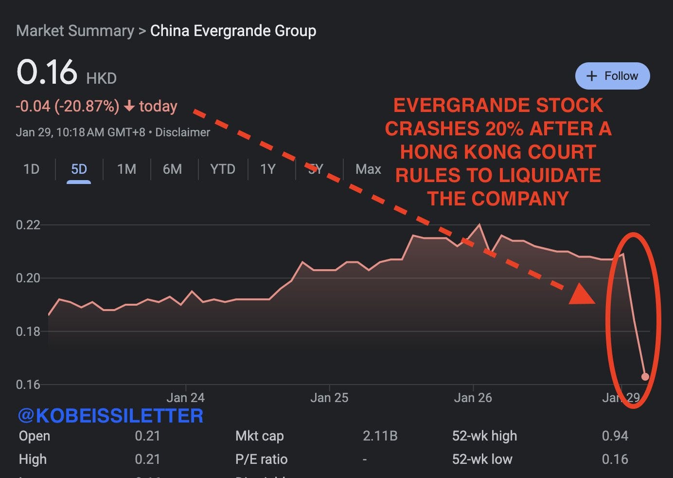 Evergrande shares drop -20% right after the news and trading immediately halted.