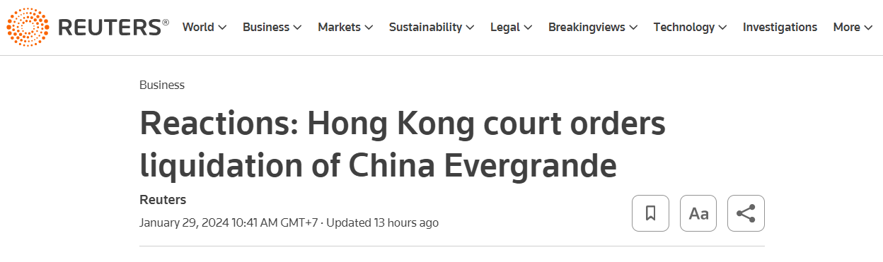 On 01/29, Hong Kong court officially rules to dissolve China real estate group (real estate) Evergrande