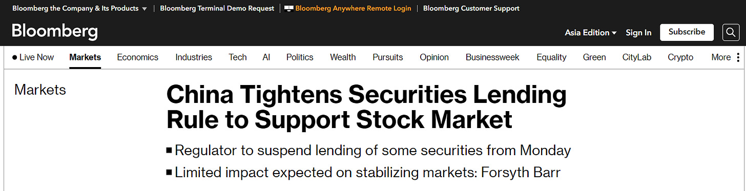 Faced with stock short selling, China suspends "lending" of certain stocks to limit further severe declines.