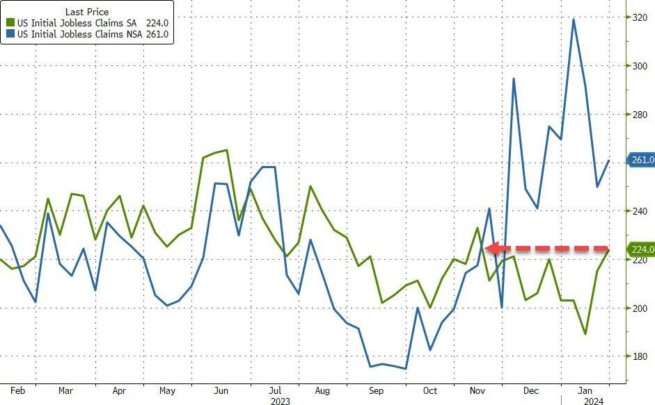 Initial jobless claims last week increased +224,000 (forecast only +212,000) - highest level since November (higher than expected).