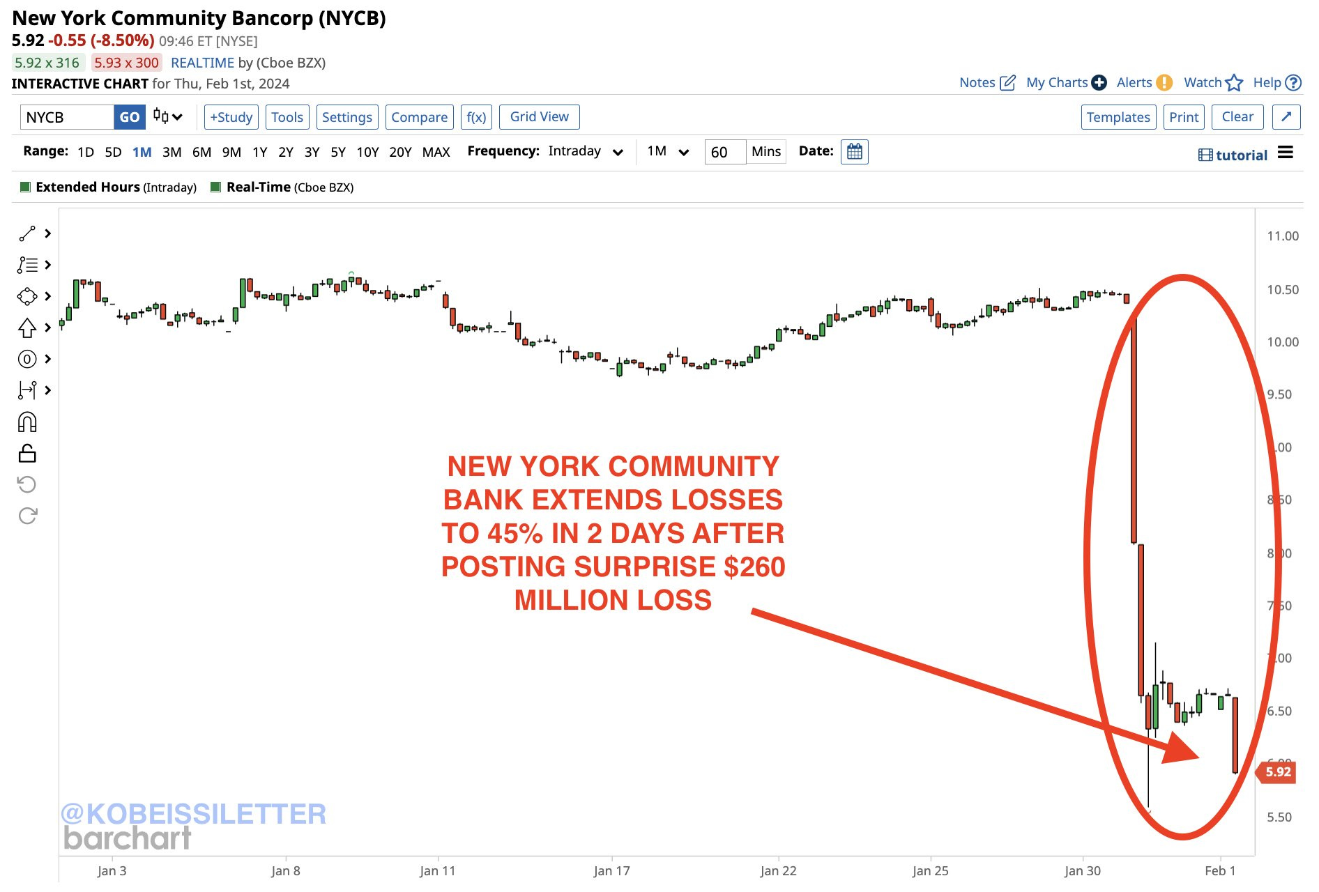 Yesterday, New York Community Bancorp unexpectedly reported net loss of -252 million USD in Q4, announced dividend cut 70%.