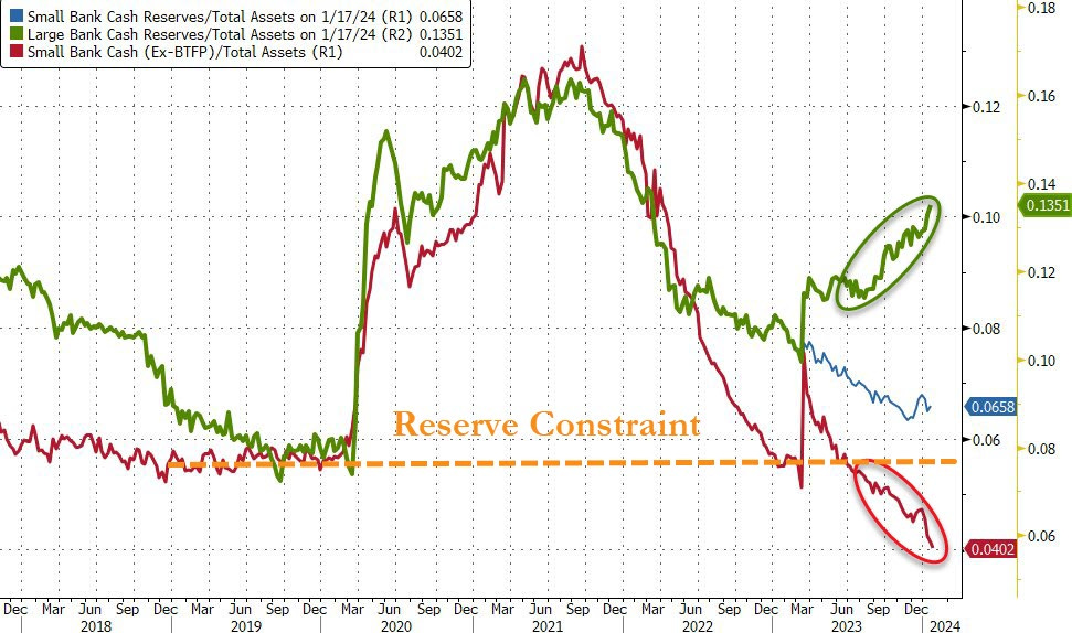 However, among them, loans at small banks have up to 28.7% as commercial real estate CRE, compared to only 6.5% at larger banks.