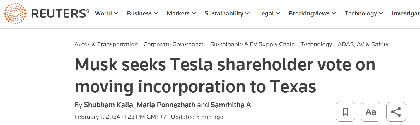 Tesla holds shareholder vote to move the company to Texas.