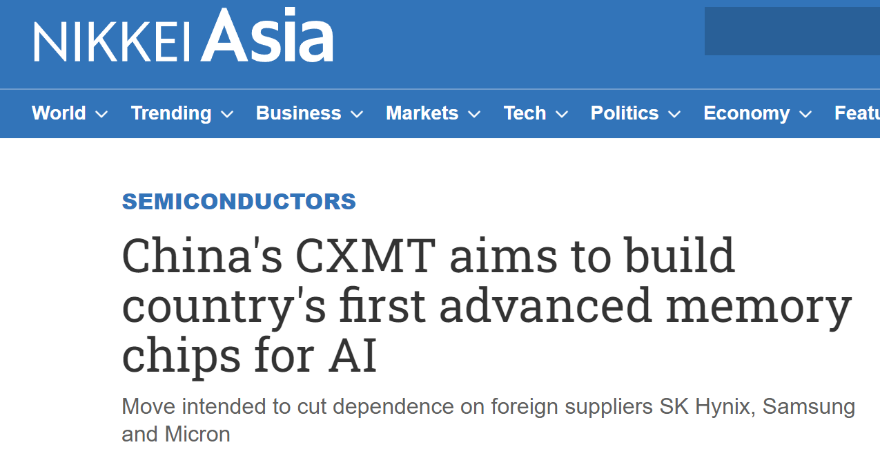 Chinese chipmaker CXMT prepares to produce its first high bandwidth memory (high bandwidth memory - HBM), a key component in AI, to reduce dependence on foreign suppliers like SK Hynix, Samsung, and Micron.