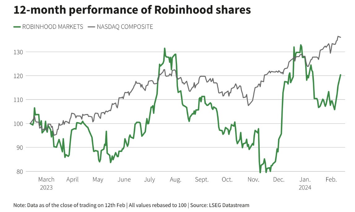 Q4 performance + positive outlook => Robinhood stock up >10% after earnings report.
