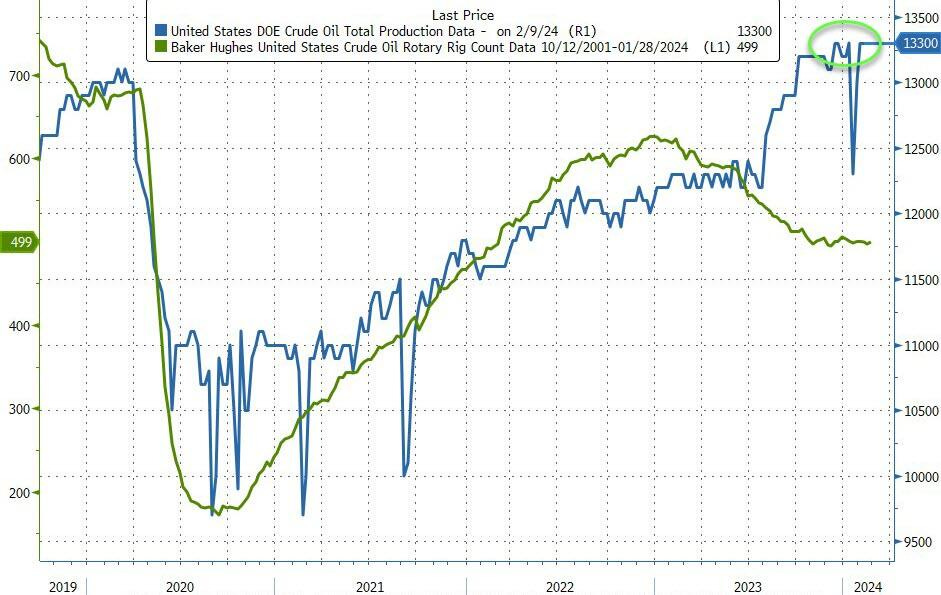 Crude oil production remains steady at record 13.3 million bpd.