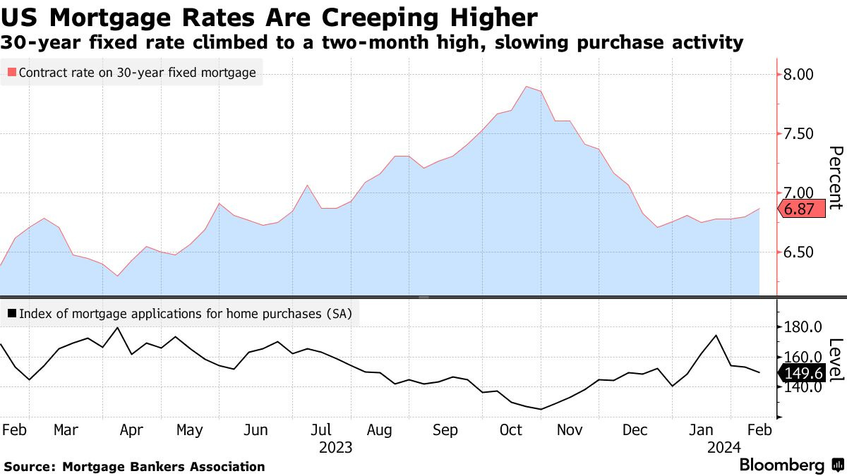 30-year mortgage rates rise again, to 6.87%, highest since early December.