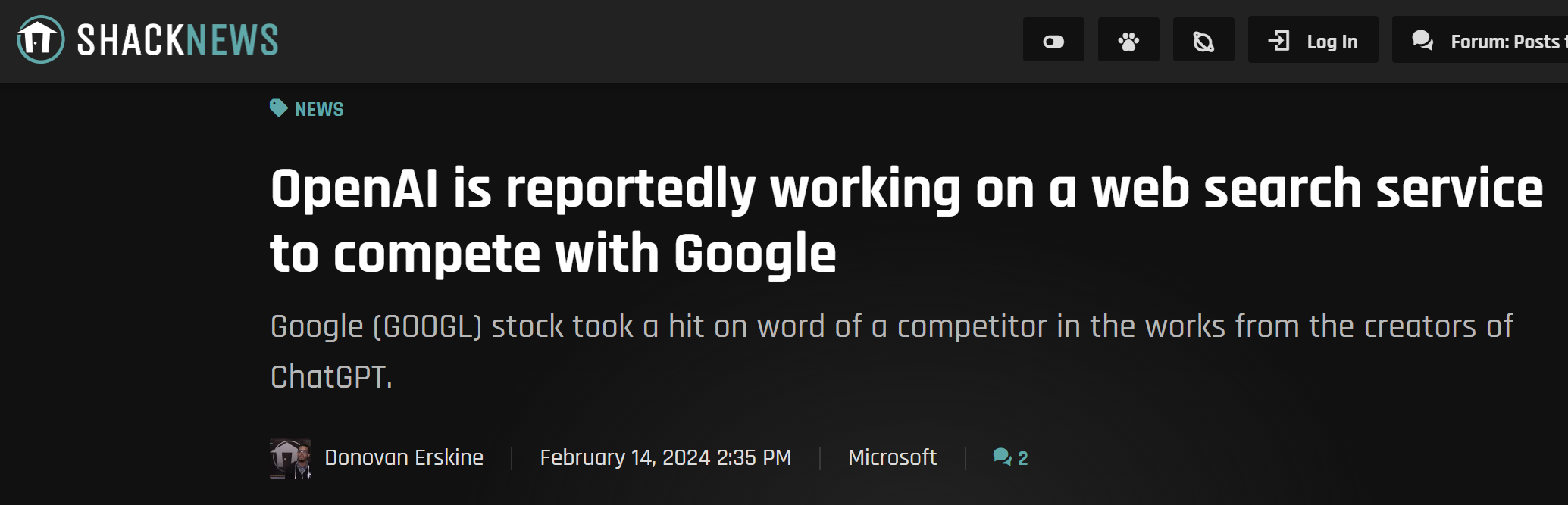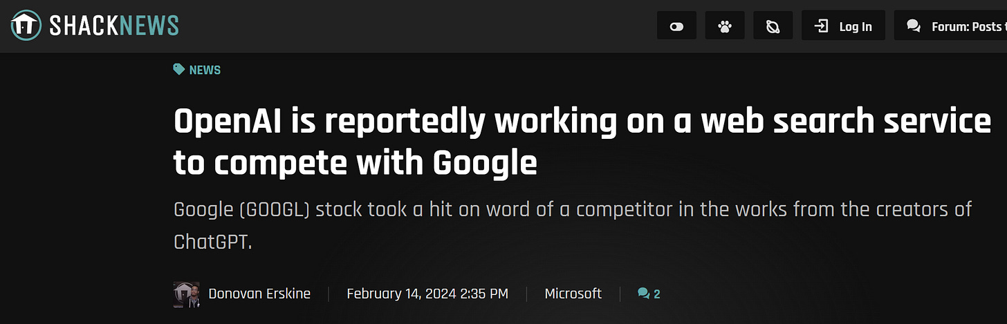 OpenAI develops web search service to compete with Google: Google stock drops sharply this morning.