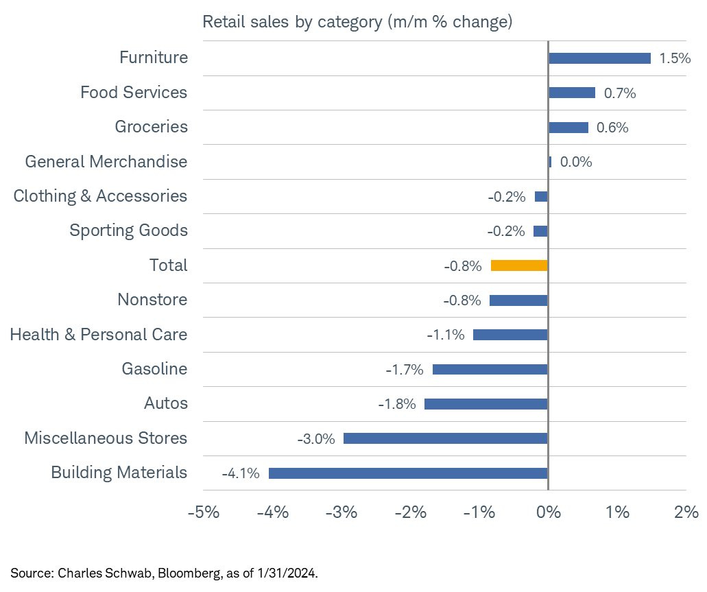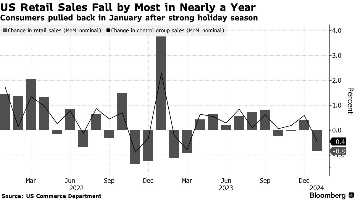 Retail sales dropped more sharply than expected after the holiday season