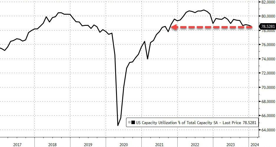 Overall industrial capacity utilization rate falls to 78.5%.