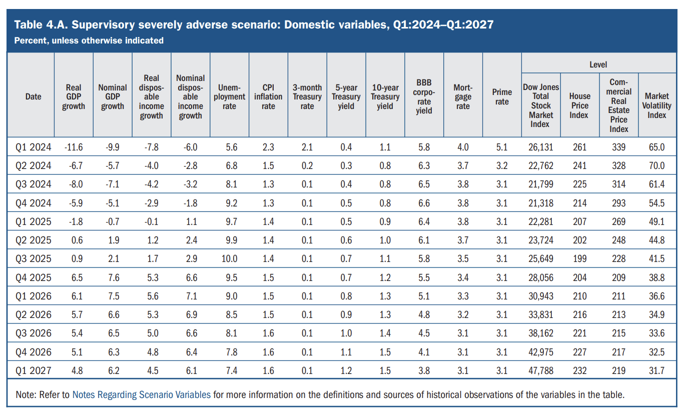 Fed just released hypothetical scenarios for Stress Test for major banks: