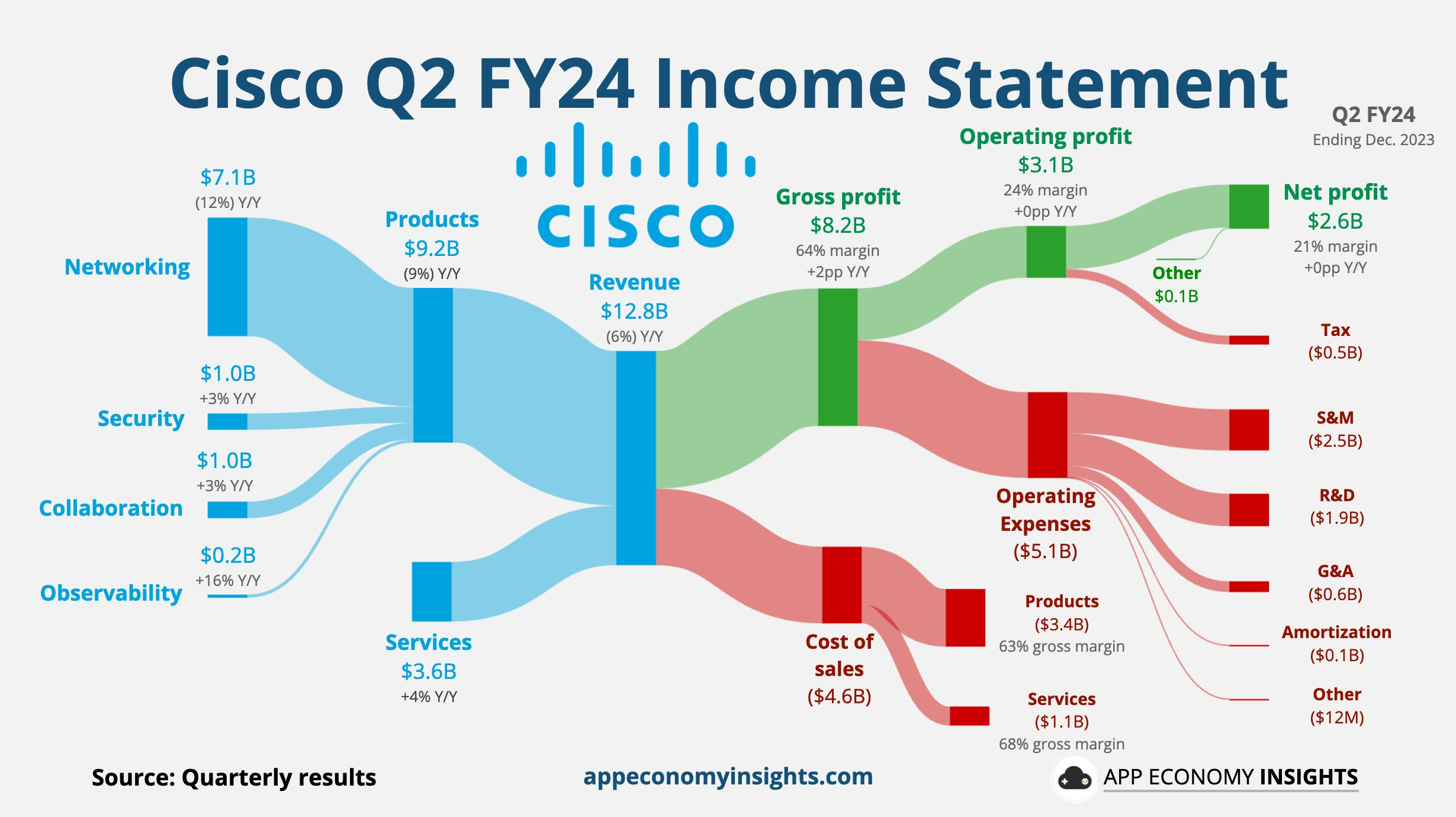 Revenue: -6% YoY down to 12.8 billion USD (beat estimate by 100 million USD).