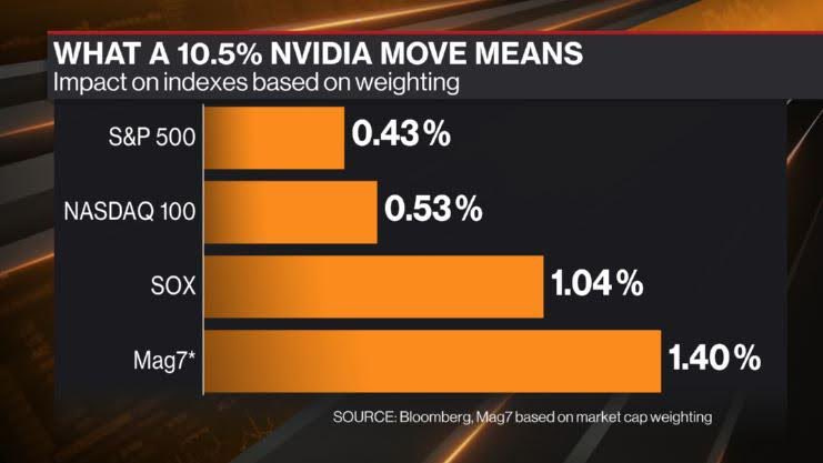 Prediction of the impact of +/- 10.5% movement in NVDA stock price on the market: