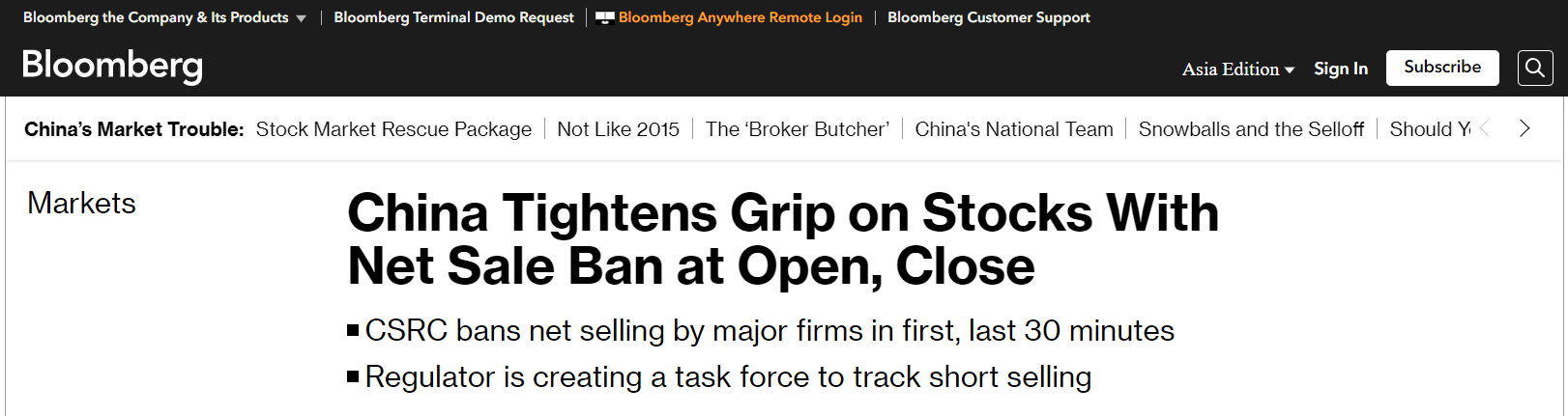 Afterwards, China issued ban on net selling stocks in first and last 30 minutes of each trading session.