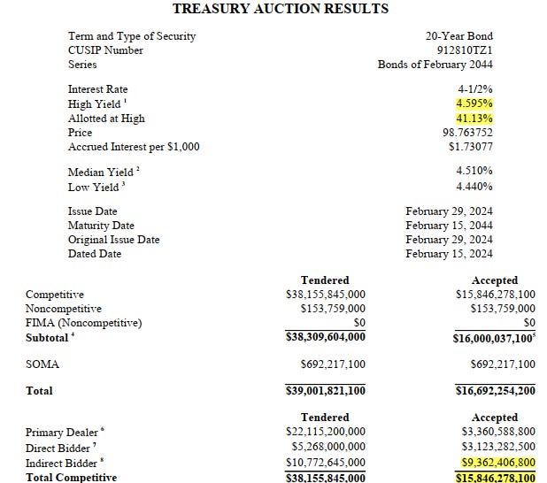High Yield: 4.595% (much higher than January auction: 4.423%)