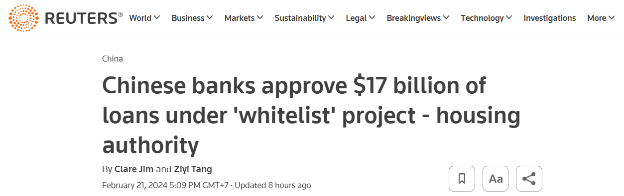 Chinese banks approve $17 billion in loans for housing projects proposed by government.