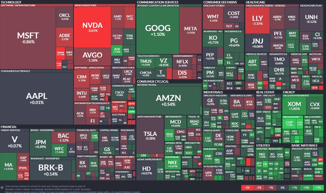 Tech sector down from yesterday awaiting Nvidia ER (end of today):