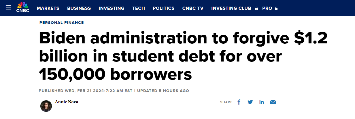 Biden administration will forgive 1.2 billion USD in student debt for more than 150,000 borrowers